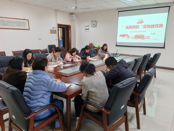 王俊彦同志带领大家学习“清廉南航”建设意见,针对新出台的《中共南京航空航天大学委员会关于推进“清廉南航”建设的意见》有针对性地向大家传达了“四清一廉”工程建设要求,扎实推进全面从严治党向纵深发展,向普通师生身边延伸。