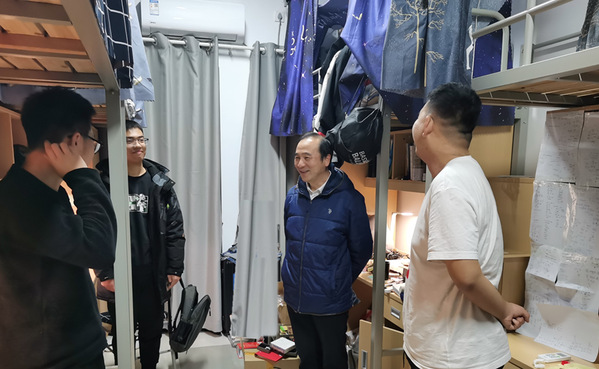 1月6日下午,米兰体育 党委书记李文雷、院长江驹带领米兰体育 领导班子和辅导员前往天目湖校区新生宿舍进行走访慰问,与同学们亲切交谈,关心学生一学期的学习生活情况以及寒假返乡可能遇到的困难并给予帮助。