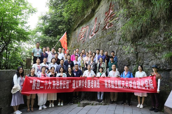 2022年7月8日,南航米兰体育官网 “喜迎二十大,奋进新征程”遵义精神专题培训班一行四十余人首先前往贵州省遵义市娄山关镇小尖山战斗遗址、大尖山战斗遗址、纪念碑、娄山关战斗遗址陈列馆进行现场参观学习。