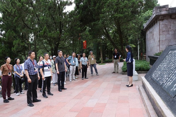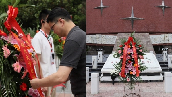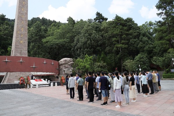 培训班全体学员第三站是来到遵义红军烈士陵园参观学习,红军烈士陵园集中了新中国成立后在遵义各处找到的红军遗骨。在陵园顶端的平台上,首先映入眼帘的是一座气势雄伟的红军烈士纪念碑,上面写着“红军烈士永垂不朽”八个大字,纪念碑的四周还镶嵌着28颗闪亮的星星,它也象征着中国共产党抗战28年的艰辛历程,圆环内壁是汉白玉石浮雕,雕刻着“强渡乌江”、“娄山关大捷”、“四渡赤水”等战争经典图像。米兰体育官网 全体学员向红军烈士纪念碑敬献了花圈,以表敬意。