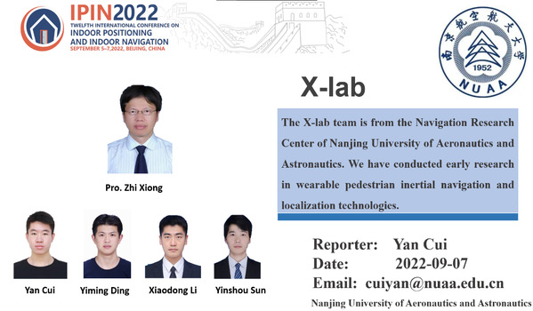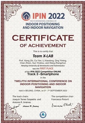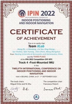 2022年9月5日-7日,由中国科米兰体育 空天信息创新研究院(中科院空天院)主办的2022年国际室内定位导航会议(Indoor Positioning and Indoor Navigation ,IPIN)于北京举行。由我院导航研究中心熊智教授悉心指导的“X-lab”团队在同期举办的第九届国际室内定位导航比赛中斩获“智能手机”赛道第一名与“足绑IMU”赛道第三名的优异成绩。