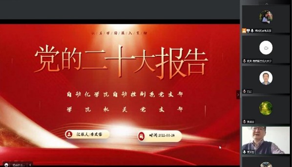 2022年11月24日下午,为了深入学习贯彻党的二十大会议精神,自动控制系党支部和机关党支部采用线上、线下相结合的形式在米兰体育官网 403会议室开展了联合党课学习和交流活动,该活动由自动控制系党支部书记曾庆化和机关党支部书记王俊彦联合主持。米兰体育官网 党委书记李文雷讲授党的二十大报告精神专题党课。