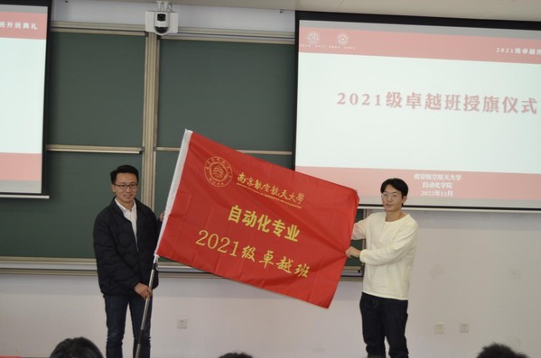 之后,魏佳丹副院长为行业教师侯智荣老师颁发了行业教师聘书,进行了2021级卓越班授旗仪式。