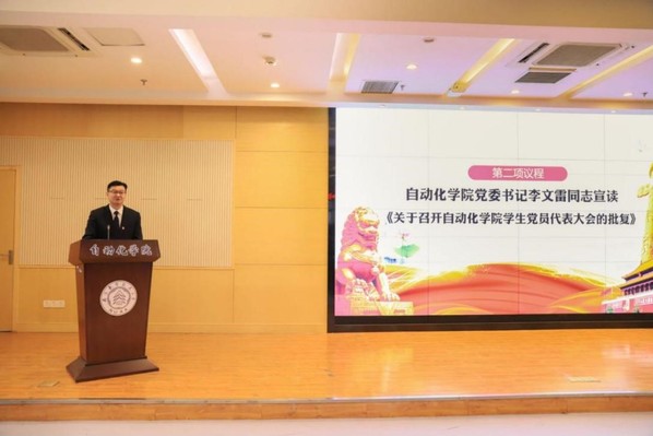 米兰体育 党委书记李文雷同志宣读米兰体育官网 党委关于召开米兰体育官网 学生党员代表大会的批复。