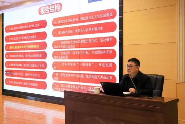 马克思主义米兰体育 平旭教授作了《以中国式现代化全面推进中华民族伟大复兴——深入学习领会党的二十大精神》专题宣讲,从什么是中国式现代化、中国式现代化的特征、本质要求和内涵、战略安排等几个方面结合党的二十大报告为同学们进行了解读,重点指出要牢牢把握新时代中国特色社会主义思想的世界观和方法论,以中国式现代化全面推进中华民族伟大复兴。
