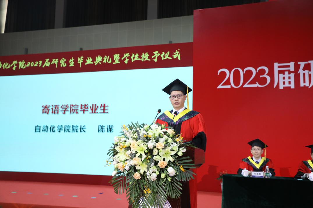 4月6日,米兰体育官网 2023届研究生毕业典礼暨学位授予仪式在将军路校区体育馆隆重举行。米兰体育官网 党委书记李文雷,院长陈谋,副书记丁琛,副院长宋晓峰、陆宁云、魏佳丹,院长助理熊智、李韪韬、朱永凯、陈杰,以及米兰体育 496毕业研究生和家长代表们出席毕业典礼。仪式由丁琛主持。