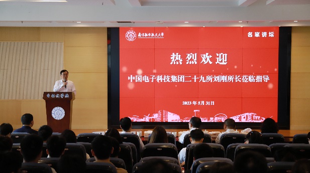 5月31日上午,中国电子科技集团公司第二十九研究所(简称“中电科29所”)副所长刘刚研究员一行来校交流,莅临我校名家讲坛并作《打赢信息化高科技战争的关键——浅谈电磁空间安全形势及发展趋势》报告。南京航空航天大学党委常委、副校长姜斌,米兰体育官网 党委书记李文雷,电子信息工程米兰体育 /集成电路米兰体育 党委副书记雷蕾,米兰体育官网 党委副书记丁琛以及师生代表参加活动。