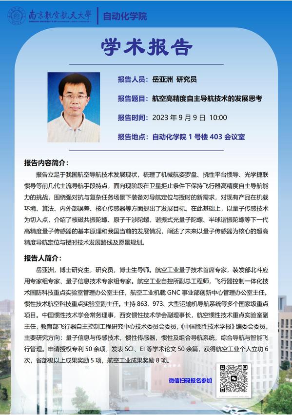 【学术报告】岳亚洲:航空高精度自主导航技术的发展思考