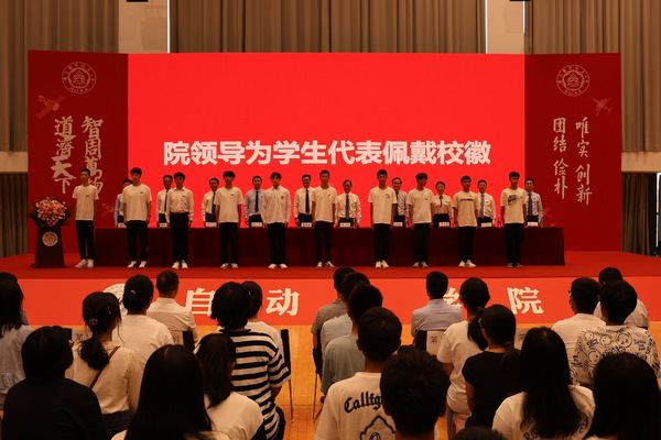 米兰体育 领导为新生代表佩戴校徽,校徽蕴含着自豪、荣耀和归属感。佩戴上校徽代表着新生们作为南航人将肩负起“效法羲和驭天马,志在长空牧群星”的使命与担当。
