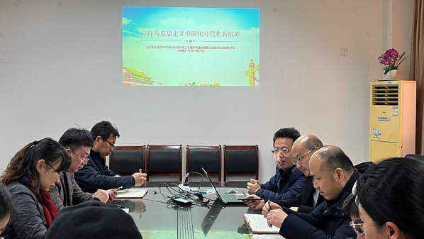 贾银亮同志围绕习近平总书记2023年6月30日在二十届中央政治局第六次集体学习时的讲话,就“开辟马克思主义中国化时代化新境界”为大家作了深入浅出的讲解。首先,贾银亮同志为大家分析了推进马克思主义中国化时代化的重要意义。贾银亮同志表示,回顾党的百年奋斗史,中国共产党为什么能,中国特色社会主义为什么好,归根到底是马克思主义行,是中国化时代化的马克思主义行。这一历史的结论,充分体现了马克思主义中国化时代化的重要性和必要性。接着,贾银亮同志从“始终坚守理论创新的魂和根”、“及时科学解答时代新课题”、“着力推进党的创新理论体系化学理化”、“注重从人民群众的创造中汲取理论创新智慧”四个方面,为大家分享了进一步推进党的理论创新的科学方法。最后,大家共同收看了中央党校刘春教授做的题为“认真学习党的二十大精神,开辟马克思主义中国化时代化新境界”的线上课程。