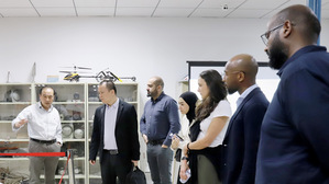 4月18日,阿联酋阿布扎比技术创新研究院(Technology Innovation Institute, Abu Dhabi, UAE)首席研究员Zhaohui Cen带领团队成员Amanda、Younes Al-Younes、Zahi Mohamed Osman Mohamed、Francisco Bilendo、Maryam Alshehhi一行6人回访我院。米兰体育官网 院长陈谋,自动控制系、电气工程系、测试工程系主要负责人参加。
