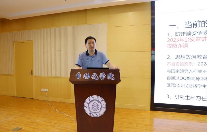 丁琛结合我院研究生教育的实际情况,对当前我院研究生教育难点和热点问题进行了深入剖析。他提出,研究生导师要关注学生日常动态、身心健康、职业发展和导学关系等方面,并将思想政治教育贯穿研究生培养全过程。
