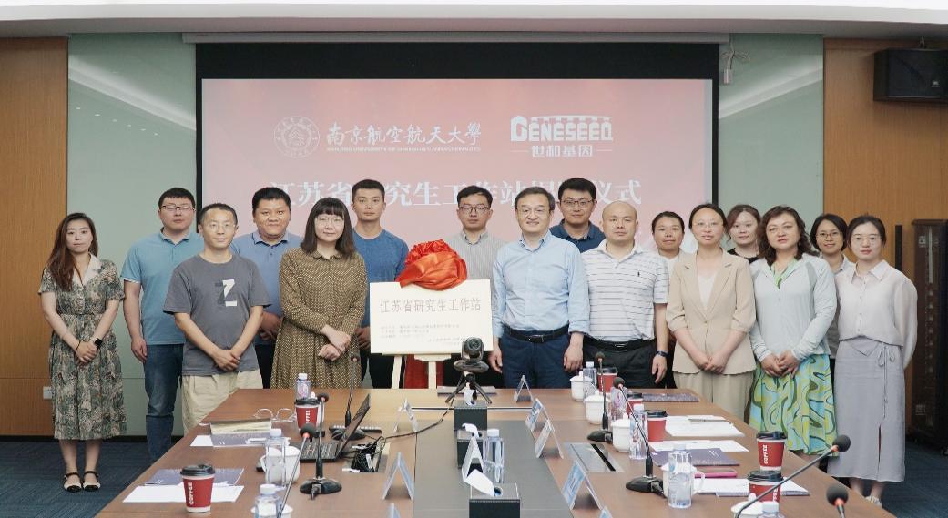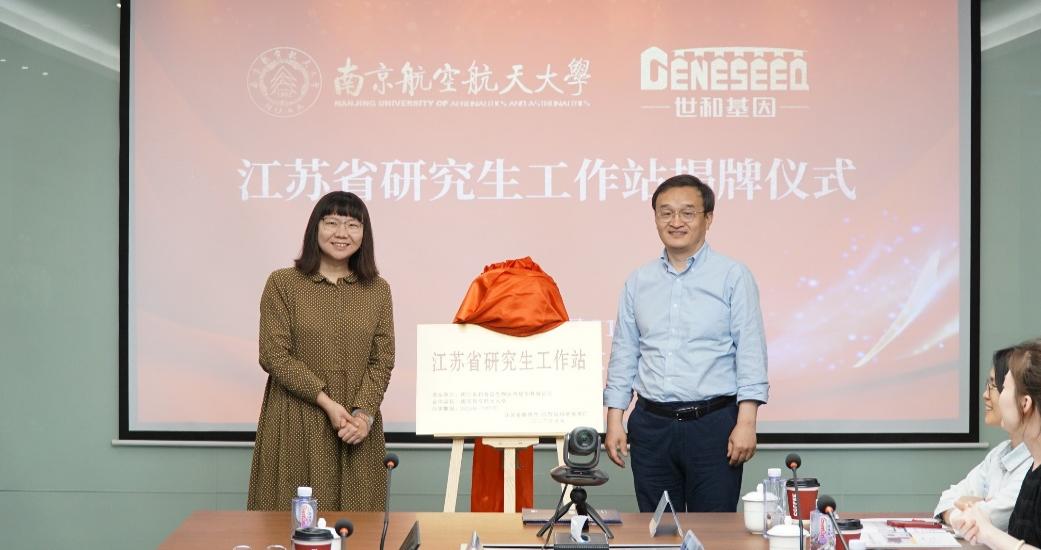 5月21日,南京航空航天大学与世和基因生物技术股份有限公司合作共建的“江苏省研究生工作站”揭牌仪式在世和南京总部举行。我校米兰体育官网 副院长宋晓峰、生物医学工程系党支部书记刘晶晶、副主任王慧捷、教授汪泉、王以瑄、米兰体育 教学办老师等一行参加揭牌仪式,世和基因联合创始人兼首席技术官汪笑男、首席医学官张宪、生物信息部总监常志力等出席仪式。