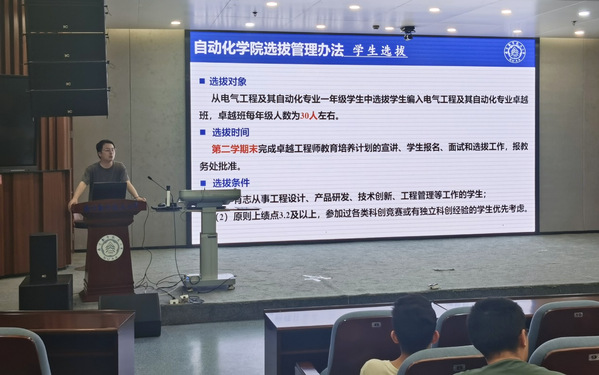 于立从组织形式和学生选拔两个方面解读了选拔管理办法。此次“卓越计划”选拔面向2023级电气工程及其自动化专业,学生经过自主报名、统一面试、审核公示等环节后方可入选。会上,现场师生围绕“卓越计划”培养方案、课程学习、实践创新等方面进行了深入交流。