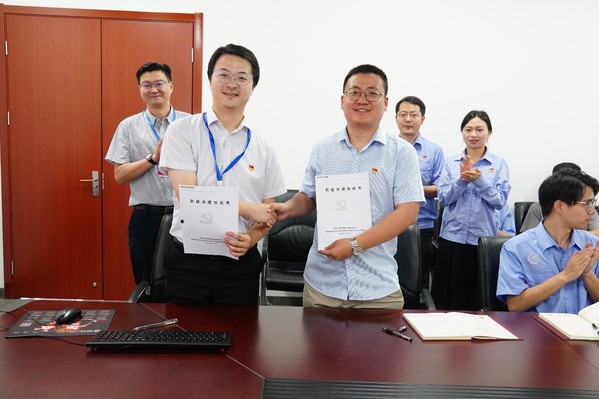 南京机电总质量师、电机部党支部书记朱叶首先对米兰体育官网 党委书记李文雷和电气学科研究生第一党支部一行来访表示热烈欢迎。随后,双方党支部书记介绍了各自党支部的基本情况和党建活动成果,探讨了支部共建思路和机制并达成共识。南京机电电机部党支部书记朱叶与电气学科研究生第一党支部书记于立签订了党建共建协议。支部书记和成员双方就支部建设经验进行了深入交流,就青年人才如何成长成才、青年学子投身航空国防事业建设以及科研方向和职业发展等主题开展交流,会议讨论充实热烈。研究生党员深切感受到南京机电的航空报国精神和一代代前辈先驱献身国防的坚定信念,立志传承红色基因,共筑国家安全。