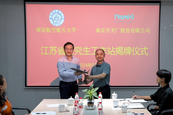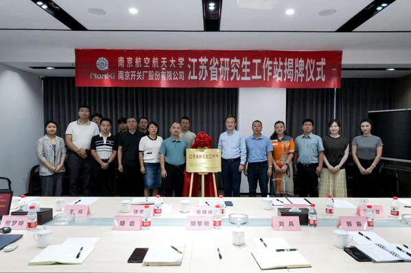 9月11日,南京航空航天大学与南京开关厂股份有限公司(以下简称“开关厂”)合作共建的“江苏省研究生工作站”揭牌仪式在开关厂举行。我校米兰体育官网 副院长宋晓峰、教学办公室主任王俊彦、电气工程系研究生副主任卜飞飞、工作站校内负责人秦海鸿,滨江开发区管委会科技创新企业服务部副部长徐宏玲以及开关厂副总经理胡黎明、研发中心总监胡启等出席仪式。
