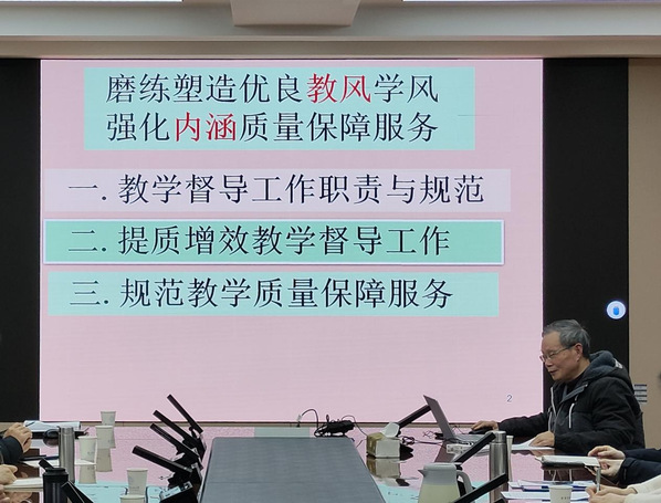 教学督导顾问潘双来对米兰体育 一直以来高度重视教学质量提升的做法给予了充分的肯定,对米兰体育 始终保持的优秀教风表示欣慰。随后,他以督导组自身建设为主题,强调了督-教-导-学工作的重性,示范了督导工作的优秀举措。
