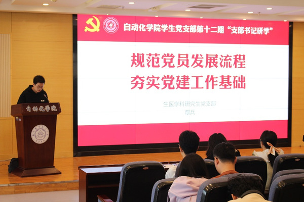 生医学科研究生党支部组织委员覃兵围绕《规范党员发展流程,夯实党建工作基础》主题进行领学。他结合支部工作实际详细介绍了学生党员发展的具体流程和注意事项,为米兰体育官网 2025年春季学生党员发展工作奠定扎实的基础。