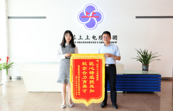 活动尾声,吴静文代表南航米兰体育官网 师生向上上电缆集团赠送“匠心铸缆授真知,校企合力育英才”锦旗,集团总经理助理狄洪杰代表企业接收锦旗。据悉,自1992年首批南航毕业生加入上上电缆集团以来,先后已有40余名南航校友在企业关键岗位任职,双方联合建立的“江苏省研究生工作站”以及开展的前沿课题研究和项目合作,通过技术攻关协同化、人才培养定制化、成果转化高效化的创新模式,已成为产学研深度融合的典范。