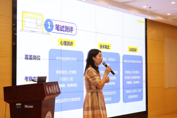 在就业准备环节,王秋楠强调了测评工具的应用、自我复盘以及职业规划咨询的重要性,引导学生从企业需求出发,精准定位个人发展路径。在简历与面试环节,她提醒同学们避免“内容堆砌”,应围绕目标岗位精选经历,运用STAR法则进行案例化表达。同时,她还分享了企业常用的三类面试方法:行为面试、情境面试和压力面试,提醒同学们注意沟通技巧、情绪管理和职业动机的表达,避免常见误区。