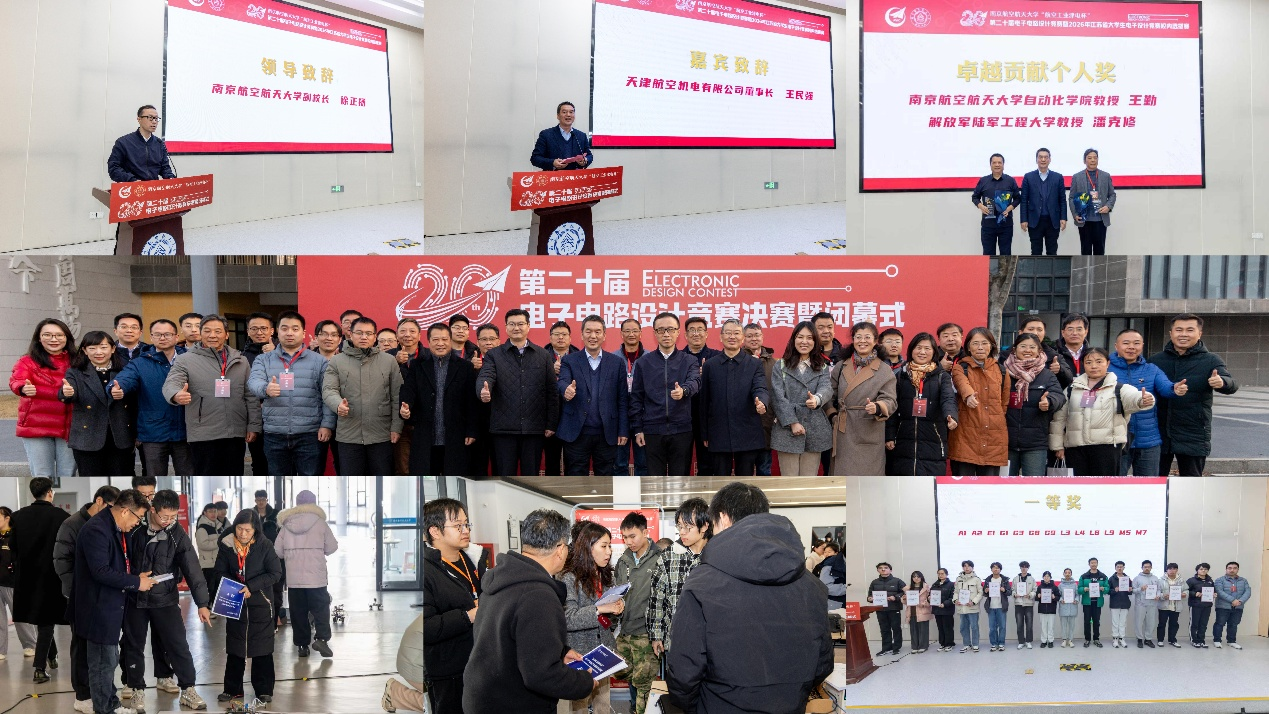 2026年1月7日,南京航空航天大学“航空工业津电杯”第二十届电子电路设计竞赛决赛暨闭幕式在天目湖校区牧星楼举行。本届竞赛适逢二十周年里程碑,意义非凡。天津航空机电有限公司董事长王民强、人力资源部部长李宏义,南京凌殴创芯电子有限公司总经理助理章喆特邀出席活动。南京航空航天大学副校长徐正扬,教务部副部长李鑫,牧星米兰体育 院长蒋彦龙,学生处副处长张建辉,校团委副书记张瀚文,天目湖校区管委会副主任潘顺荣,米兰体育官网 党委书记李文雷,牧星米兰体育 党委副书记兼致慧书院执行院长丁琛,以及米兰体育官网 的领导和老师出席了闭幕式。来自陆军工程大学、东南大学等高校的8名资深评审专家,以及校内16名评委老师共同见证了本届赛事盛会。