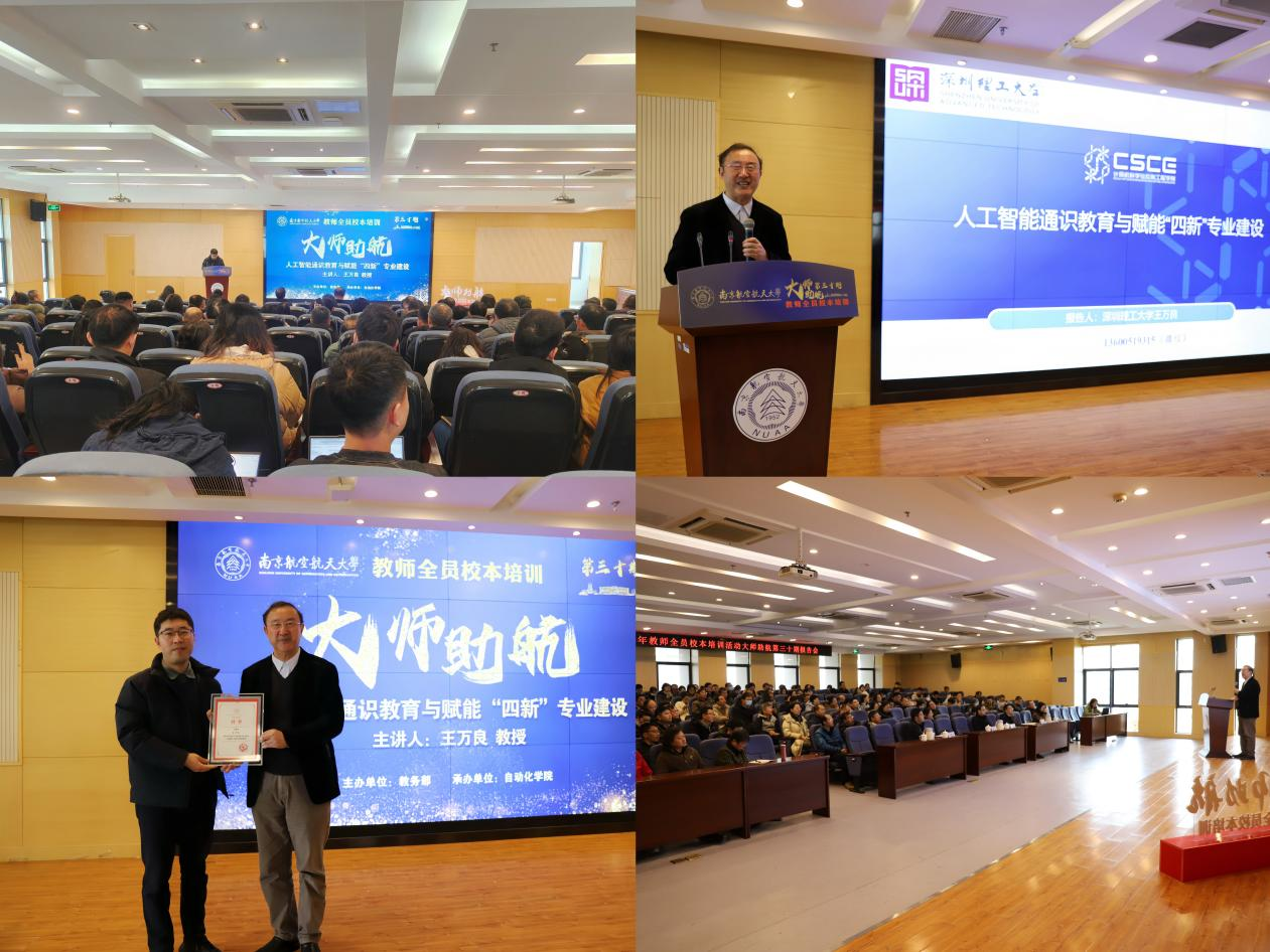 1月12日上午,米兰体育官网 承办我校教师全员校本培训—“大师助航”第三十期报告会,特邀深圳理工大学国家级教学名师王万良教授作题为《人工智能通识教育与赋能“四新”专业建设》的专题报告。教师发展与教学评估中心主任李晋斌、自动化米兰体育 院长陈谋、副院长陈杰出席,各米兰体育 近150余名教师听取报告。报告会由李晋斌主持。