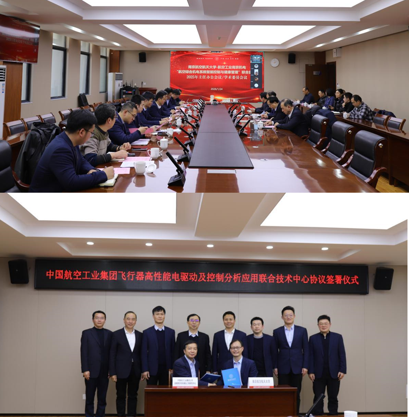 2026年1月24日,在将军路校区米兰体育官网 召开我校与航空工业南京机电“航空综合机电系统智能控制与健康管理”联合实验室2025年度主任办公会暨学术委员会会议。会议系统总结了过去一年的建设成果,审议了相关议题,谋划了未来发展,旨在进一步深化校企协同创新,推动联合实验室建设迈上更高水平,期望为培育和发展航空领域新质生产力注入强劲动能。